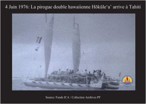 Le vendredi 4 juin 1976, après plus d’un mois de navigation, la pirogue hawaïenne Hōkūle‘a’ est accueillie sur la Plage Cigogne à Papeete par près de 15000 Tahitiens.