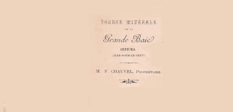 Le document est une lettre de format 21,5×27,8. L’en-tête annonce : SOURCE MINÉRALE DE LA GRANDE BAIE – HITIRUA (ÎLES-SOUS-LE-VENT) – M. F. CHAUVEL, Propriétaire.